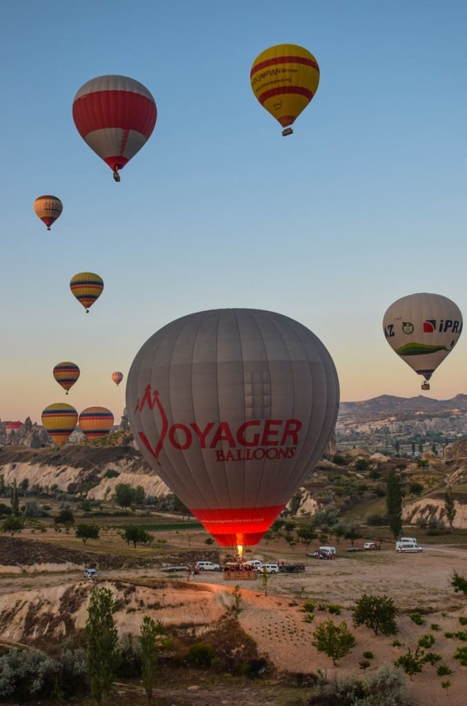 All around us, there are dozens more balloons in various stages of flight. Cappadocia allows a maximum of 100 hot air balloons in the air at any given time. From what I can see, it looks like we’ll be close to that limit today.