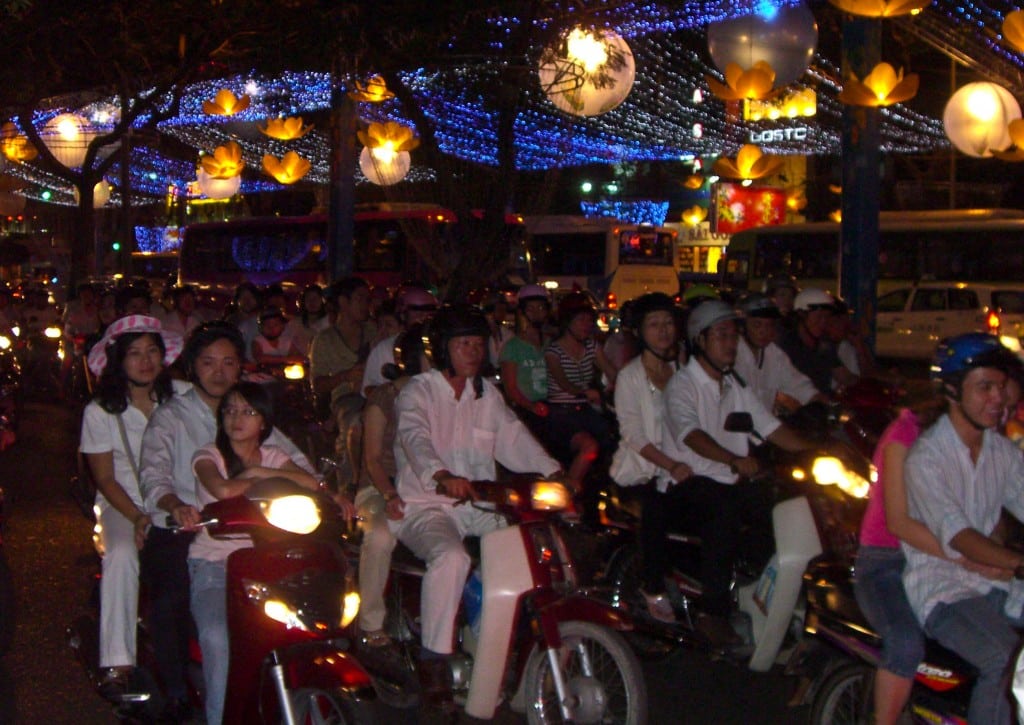 As I got closer to the hotel in my cab I was mesmerized by the thousands of motor-scooters rushing by on all sides of the cab and by the dazzling light displays all around the city celebrating the Tet New Year (which was technically Feb 6-10 but is apparently celebrated all month).