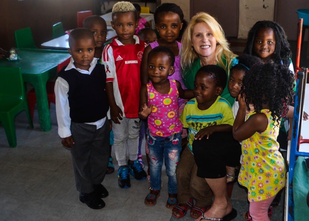 We drive straight into one of the squatter camps surrounding the township and park in front of a tiny, single-room structure painted bright yellow with colorful drawings on the walls. It’s a ray of sunshine in an otherwise dilapidated neighborhood.