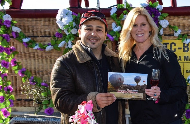 With our basket now safely back on the ground, we celebrate the experience with a traditional post-flight champagne toast. We gather around while Halis gives a toast and hands out our flight certificates.
