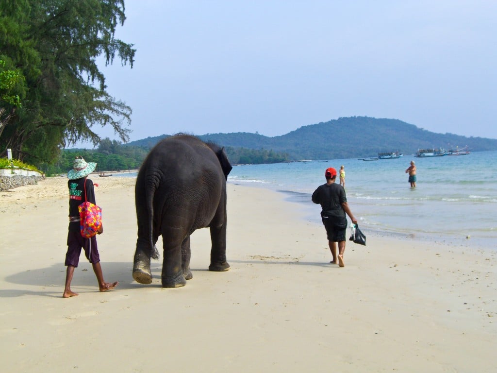I got settled in, then headed down to the beach to explore the resort a little. I guess I shouldn’t be surprised but there was an elephant getting hosed off down by the pool. He was pretty cute and seemed to really be enjoying the shower. Then he took off down the beach, stopping along the way for anyone with bananas.